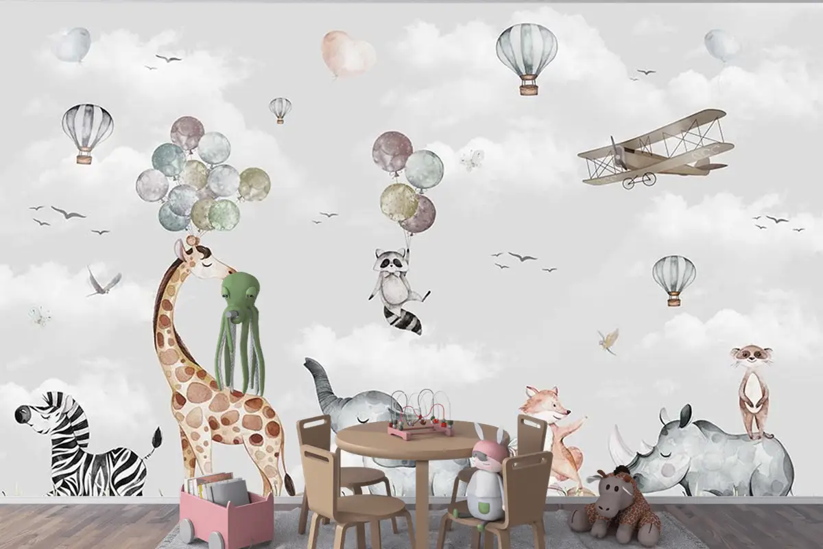 Mutlu Hayvanların Renkli Dünyası Çocuk Odası Duvar Kağıdı