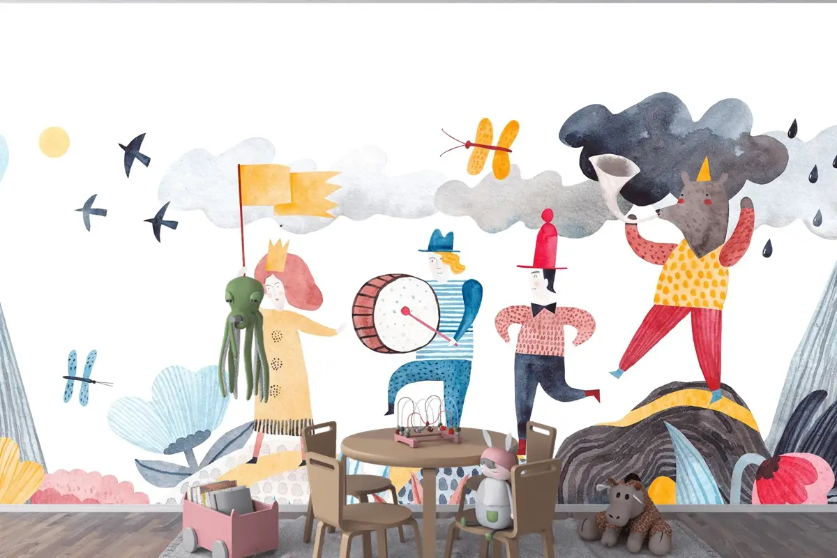 Neşeli Kortej ve Renkli Karakterler Çocuk Odası Duvar Kağıdı