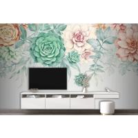 Nostaljik Yumuşak Yeşil Asma Çiçek Sanatı Duvar Kağıdı
