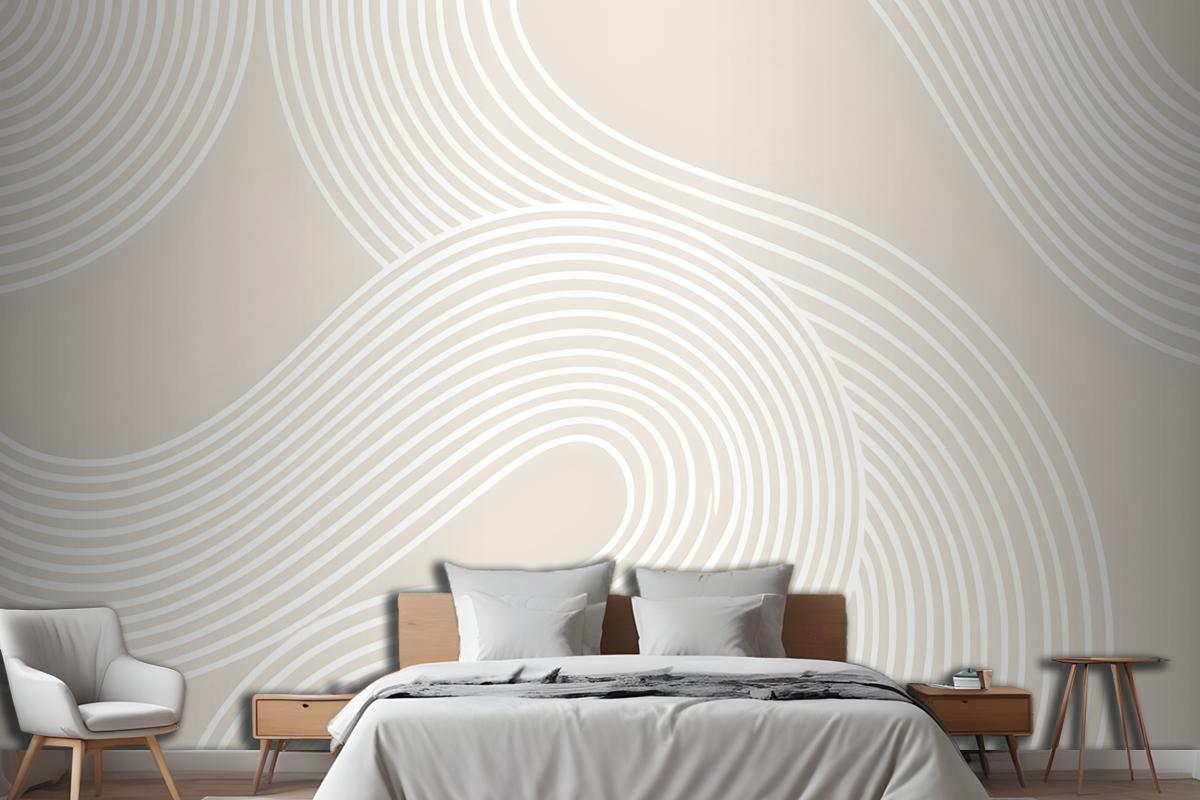 Nötr Kıvrımlı Çizgiler Modern Zen Bahçesi Yatak Odası Duvar Kağıdı