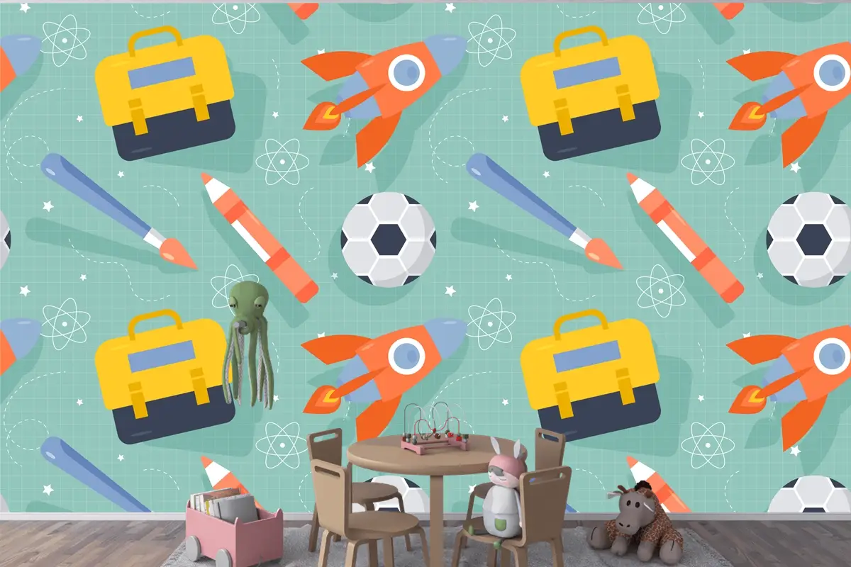 Okula Dönüş Çocuk Odası Duvar Kağıdı İçin Düz Desen Tasarımı