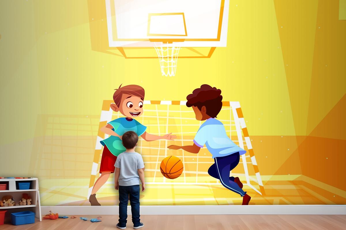 Okulda Topla Basketbol Oynayan Çocuk Odası Duvar Kağıdı