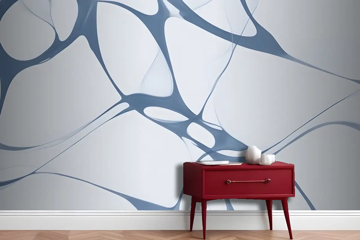 Organik Akan Şekillerle Soyut Mavi Ve Beyaz Desen Antre Hol Koridor Duvar Kağıdı