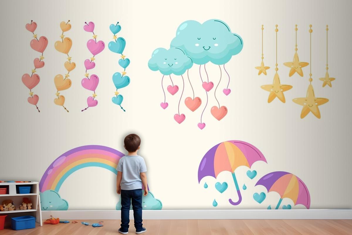 Organik Düz Chuva De Amor Dekorasyon Elemanı Koleksiyonu Çocuk Odası Duvar Kağıdı