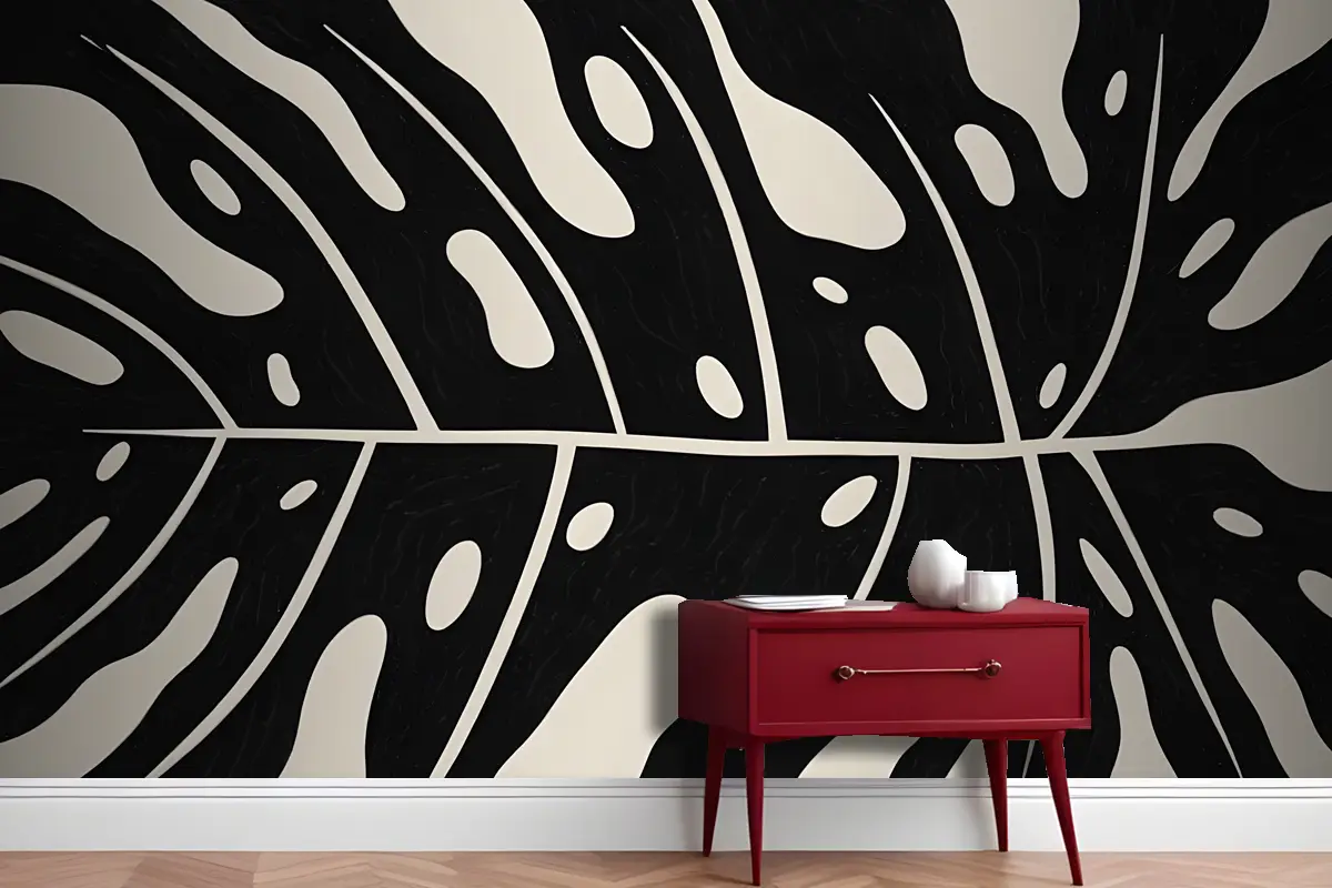 Organik Şekiller Ve Çizgilerle Siyah Beyaz Soyut Desen Antre Hol Koridor Duvar Kağıdı