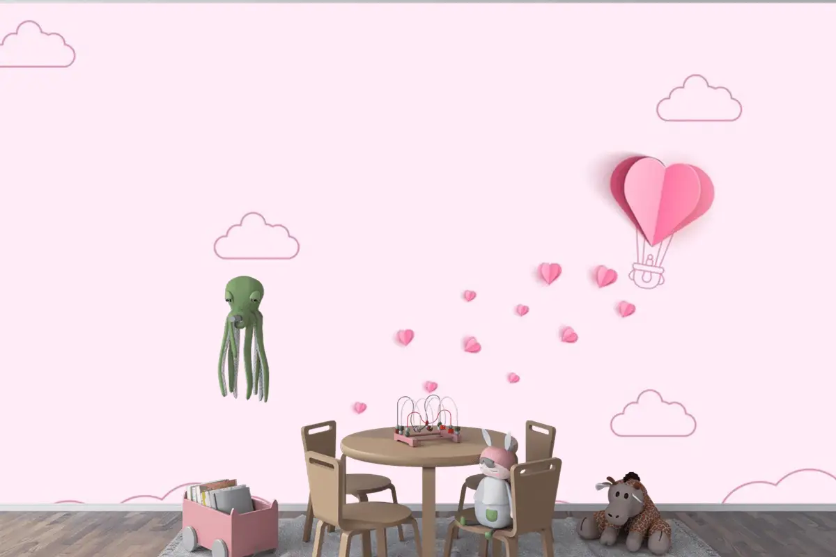 Origami Yapımı Sıcak Hava Balonu Ve Bulut Çocuk Odası Duvar Kağıdı