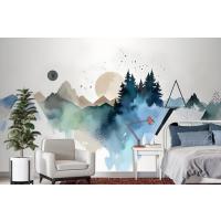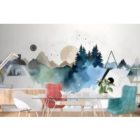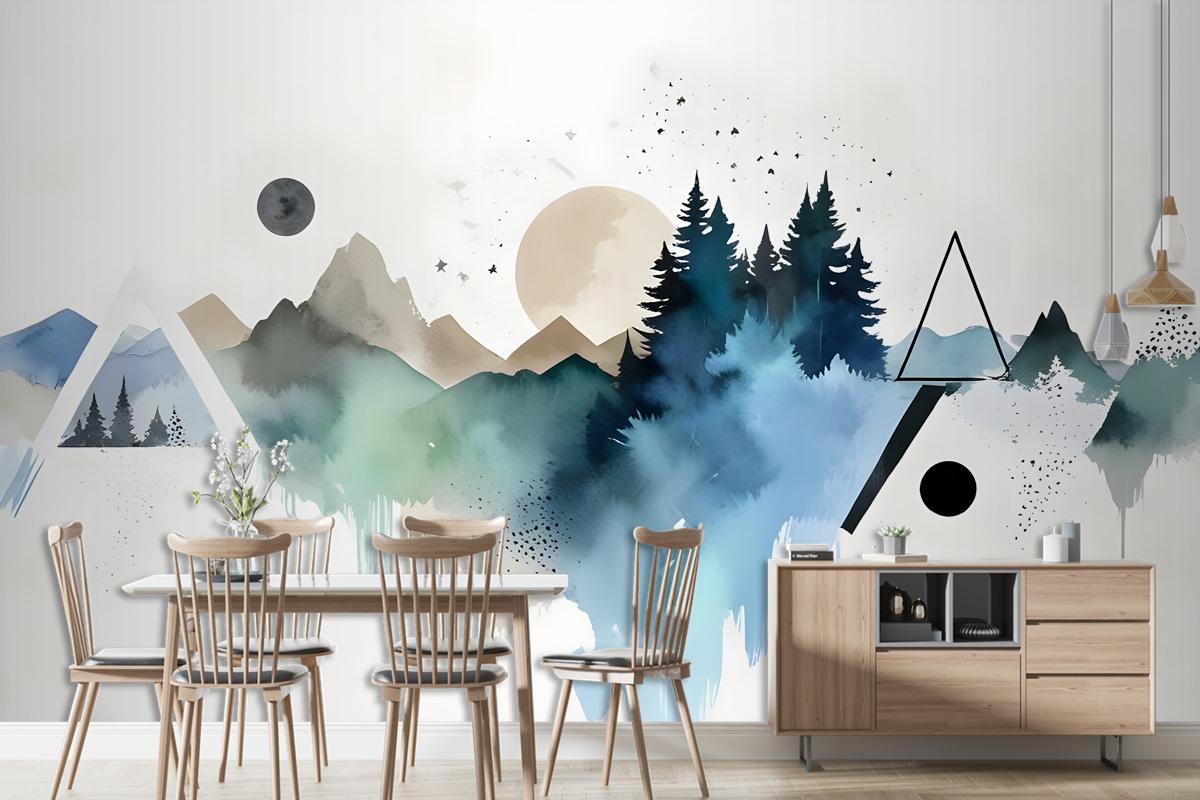Orman Geometrik Desenli Duvar Kağıdı