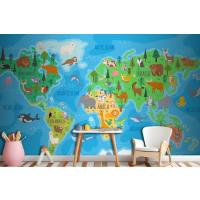 Orman Hayvanları Çocuk Odası Duvar Kağıdı Ile Çocuk Odası İçin Karikatür Dünya Haritası