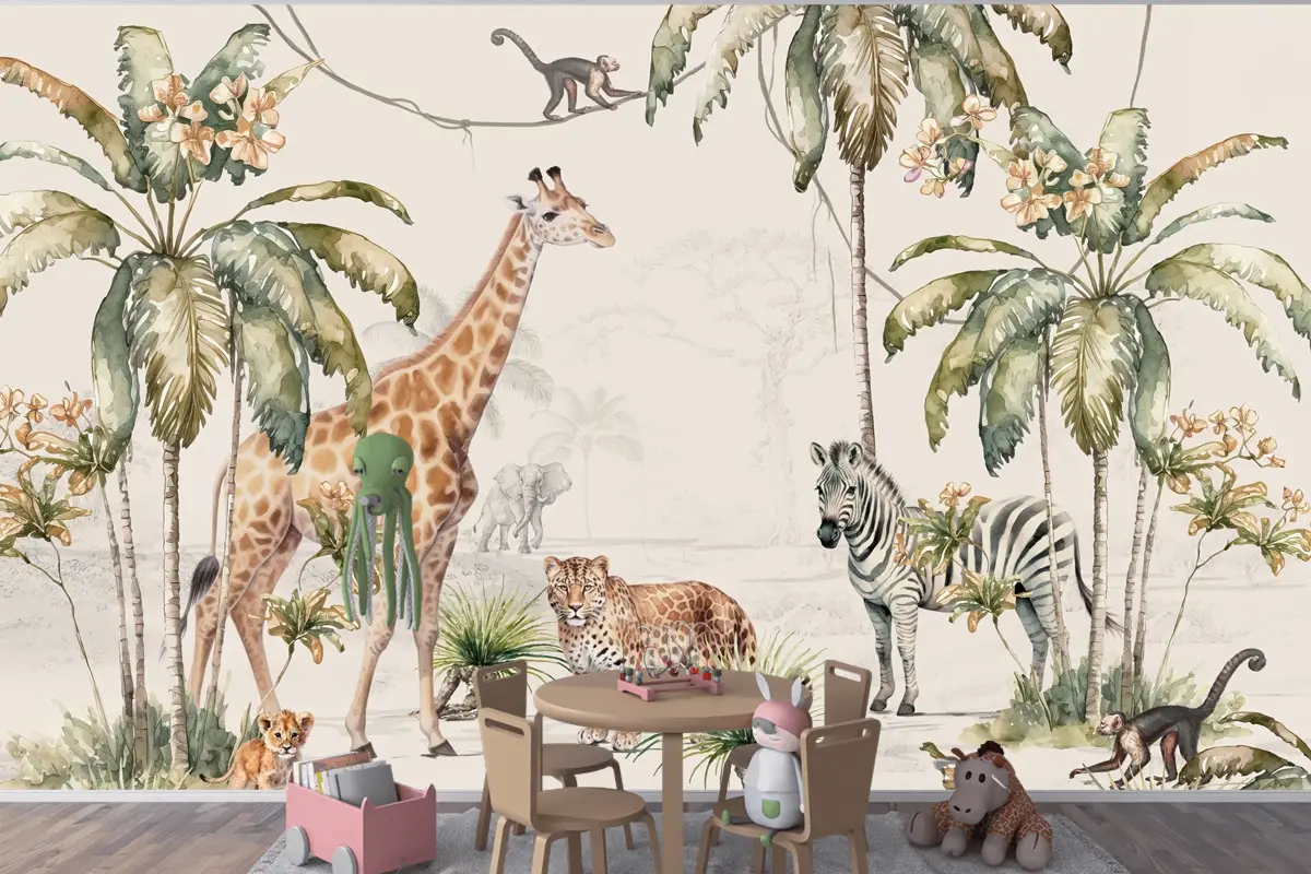 Orman Hayvanları Oyun Parkı Çocuk Odası Duvar Kağıdı