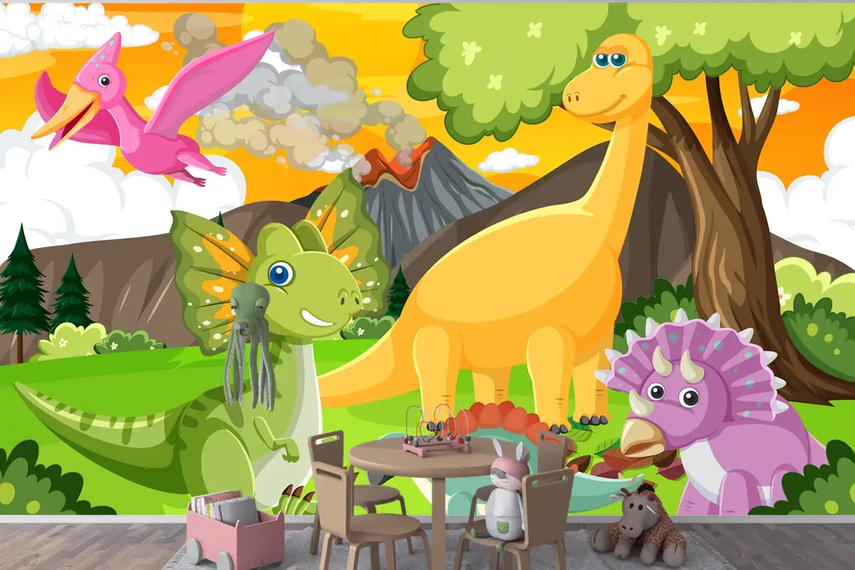 Ormandaki Sevimli Dinozor Grubu Çocuk Odası Duvar Kağıdı