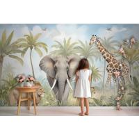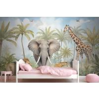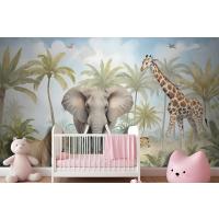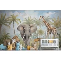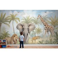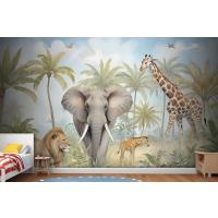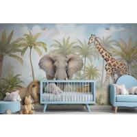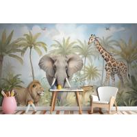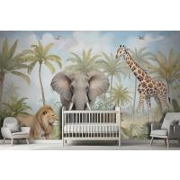 Ormandaki Suluboya Safari Hayvanları Çocuk Odası Duvar Kağıdı