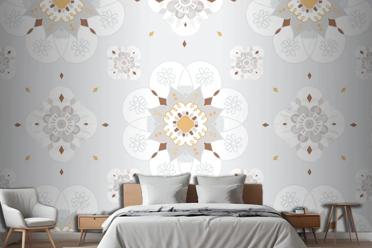 Oryantal Mandala Çiçek Desenli Yatak Odası Duvar Kağıdı