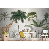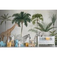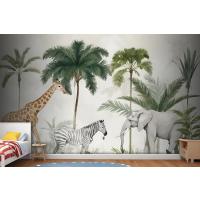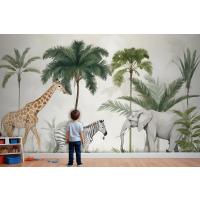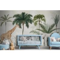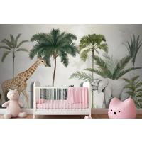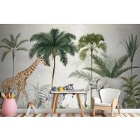 Palmiye Ağaçları Ile Çocuklar Vahşi Tropikal Hayvanlar Çocuk Odası Duvar Kağıdı
