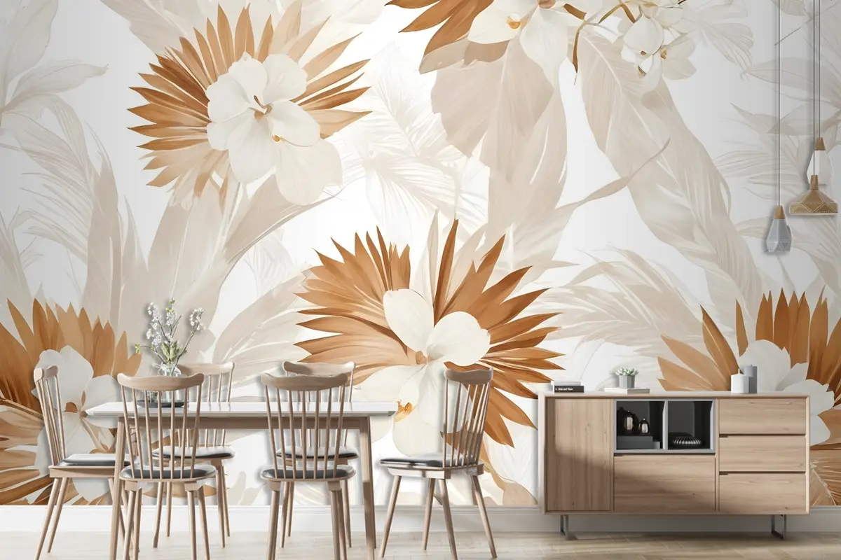 Palmiye Yaprağı Duvar Kağıdı Ile Nötr Boho Bitkiler
