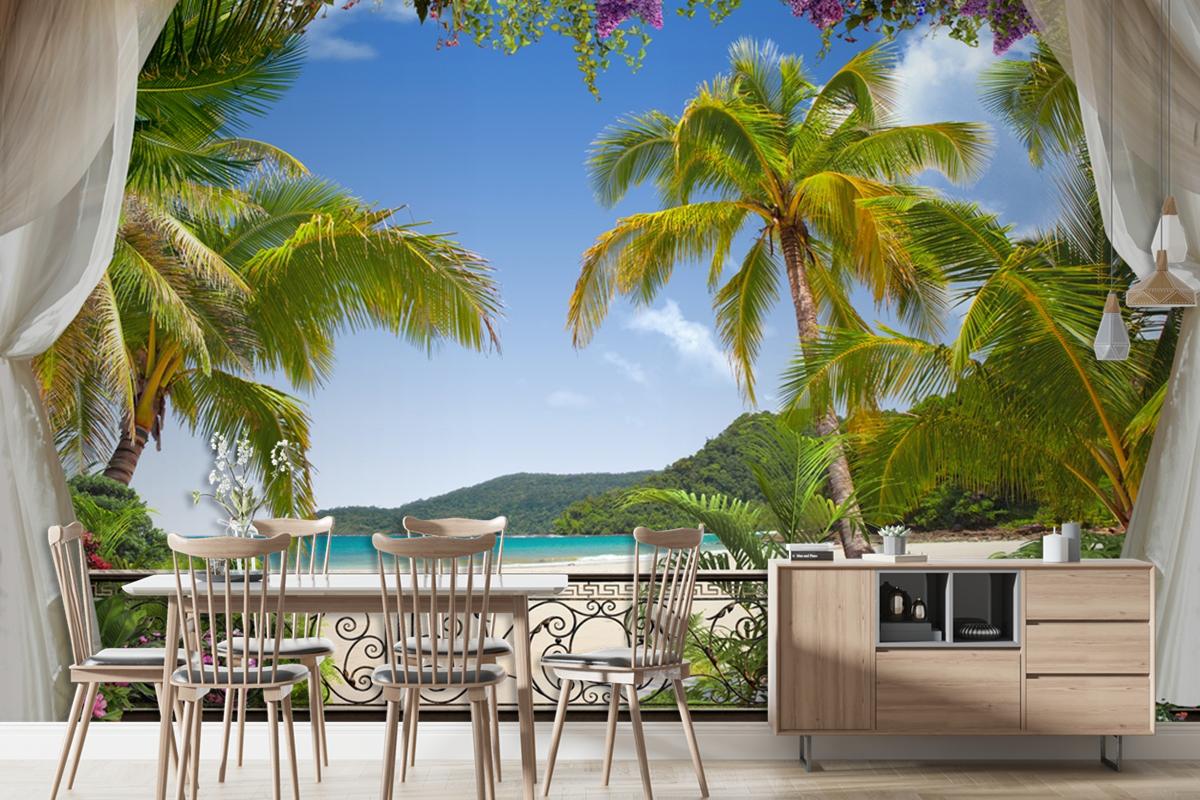 Palmiyeler Altında Rüya Gibi Bir Manzara Duvar Kağıdı