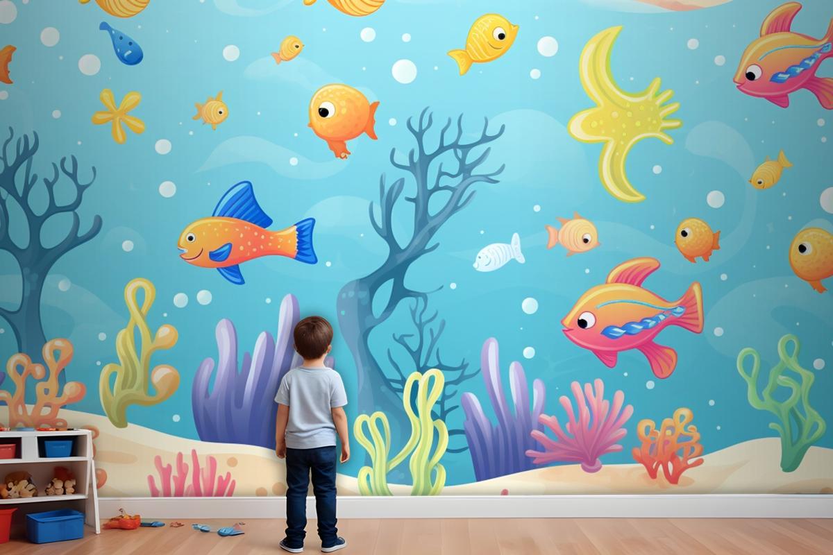 Palyaço Balığı Ve Mercanla Bir Mercan Resifinin Tablosu Çocuk Odası Duvar Kağıdı