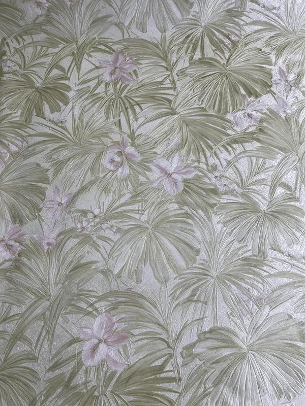 Parlak Yeşil Tropikal Yapraklı Çiçek Desenli Duvar Kağıdı 666816