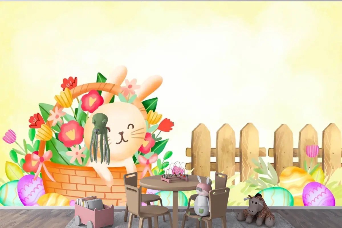 Paskalya Kutlaması Çocuk Odası Duvar Kağıdı Için Suluboya Arka Plan