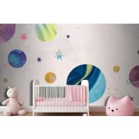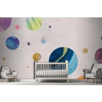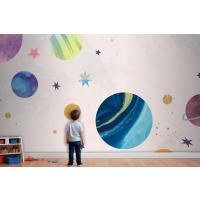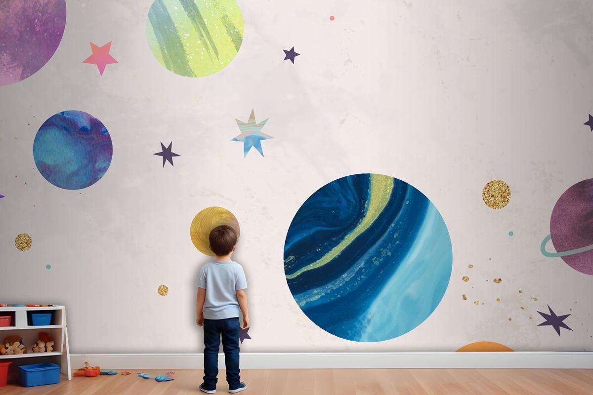 Pastel Çocuk Odası Duvar Kağıdı Duvar Üzerine Renkli Galaksi Suluboya Doodle