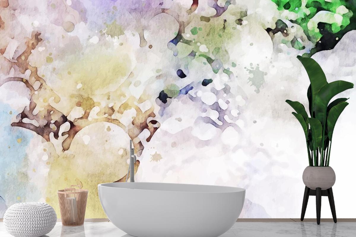 Pastel Doku Suluboya Arka Plan Banyo Duvar Kağıdı