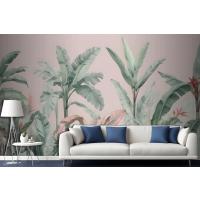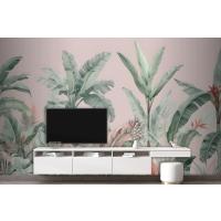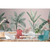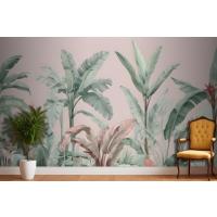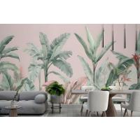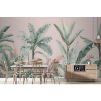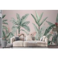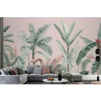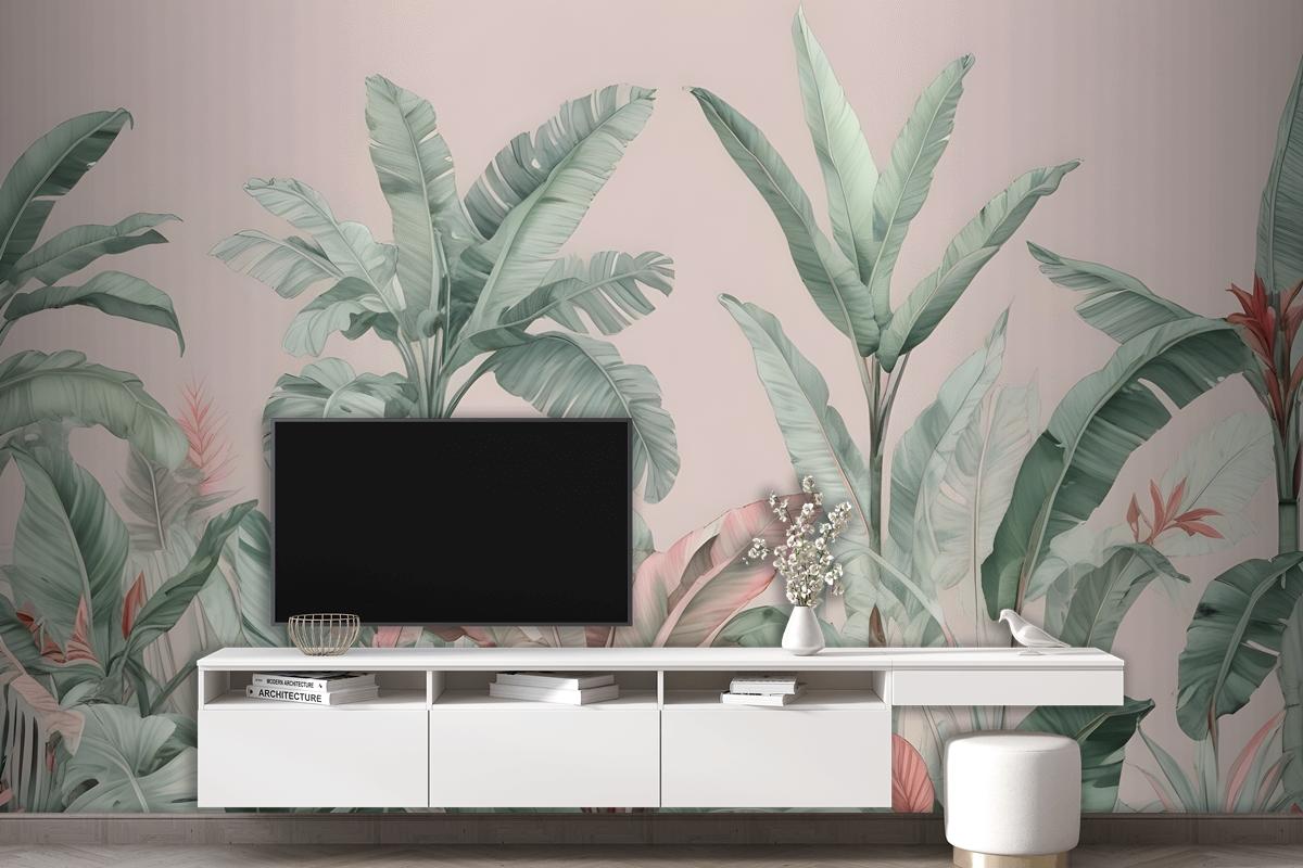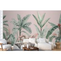 Pastel Pembe Ve Yeşil Vintage Tropikal Oturma Odası Salon Duvar Kağıdı