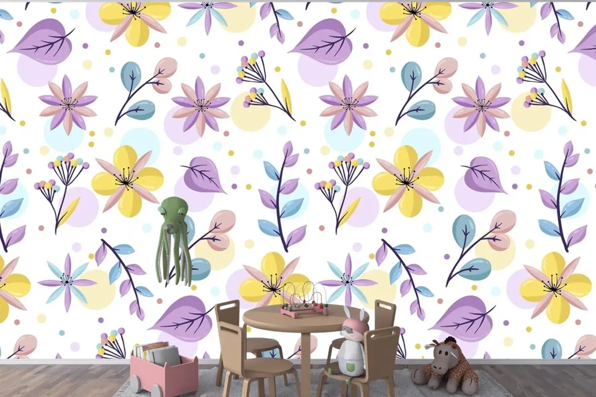 Pastel Renklerde Çiçek Desenli Çocuk Odası Duvar Kağıdı