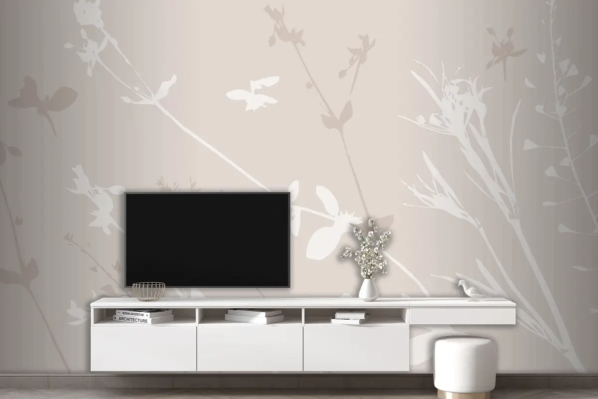 Pastel Renklerde Çiçek Silüetleri Tv Arkası Duvar Kağıdı