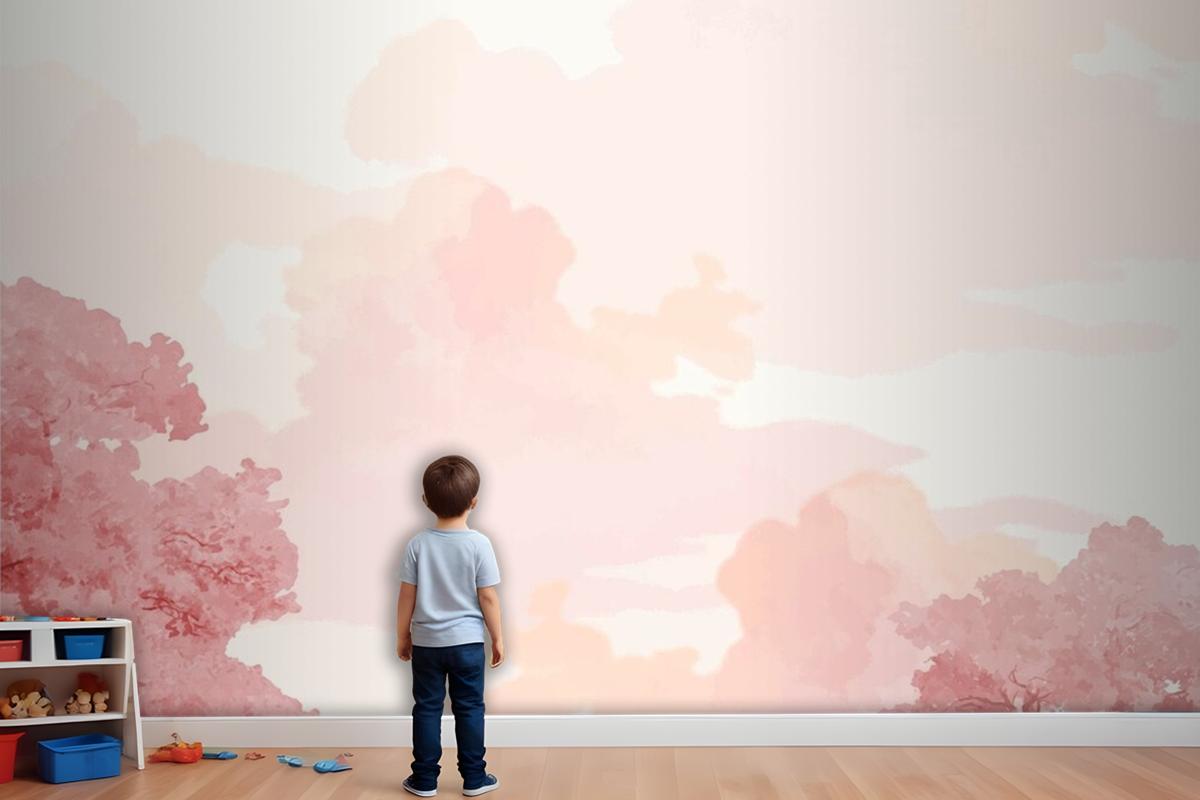 Pembe Ağaçlar Ve Gökyüzü Afiş Çocuk Odası Duvar Kağıdı