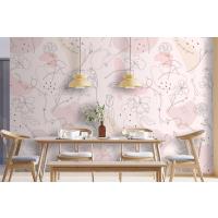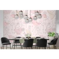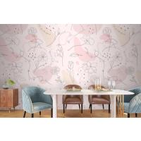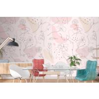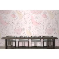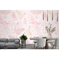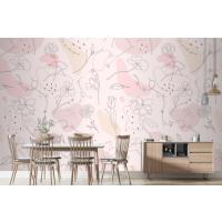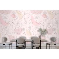 Pembe Çiçek Desenli Duvar Kağıdı Elle Çizilmiş Stil Duvar Kağıdı