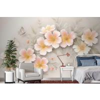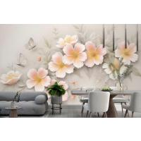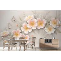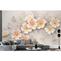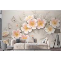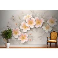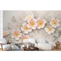 Pembe Çiçek Ve Beyaz Kelebek Duvar Kağıdı