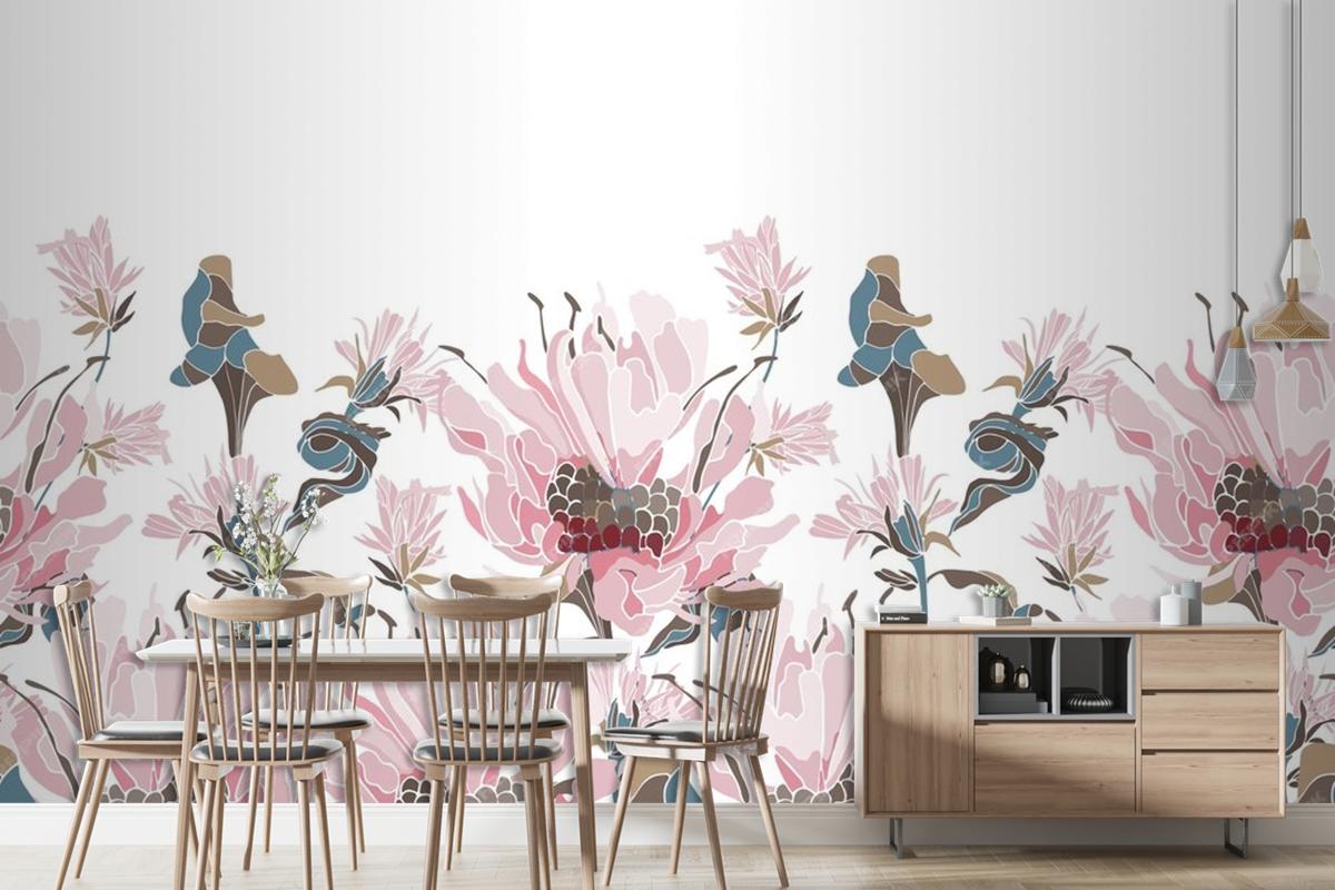 Pembe Çiçekler Otlar Duvar Kağıdı