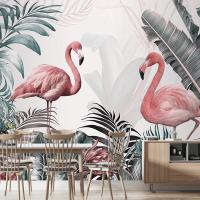 Pembe Flamingolar Ve Tropikal Yapraklar Duvar Kağıdı