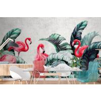 Pembe Flamingolar Ve Tropikal Yapraklar Duvar Kağıdı Tasarımı