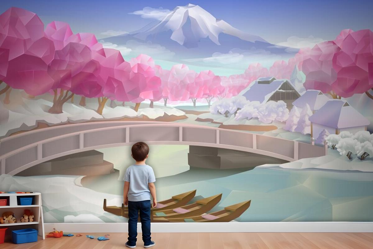Pembe Koru Manzara Çocuk Odası Duvar Kağıdı