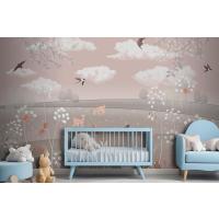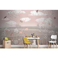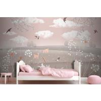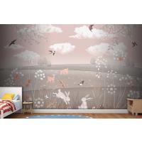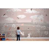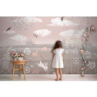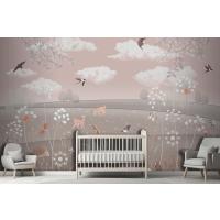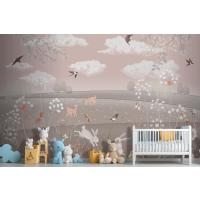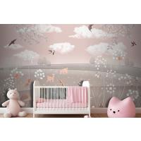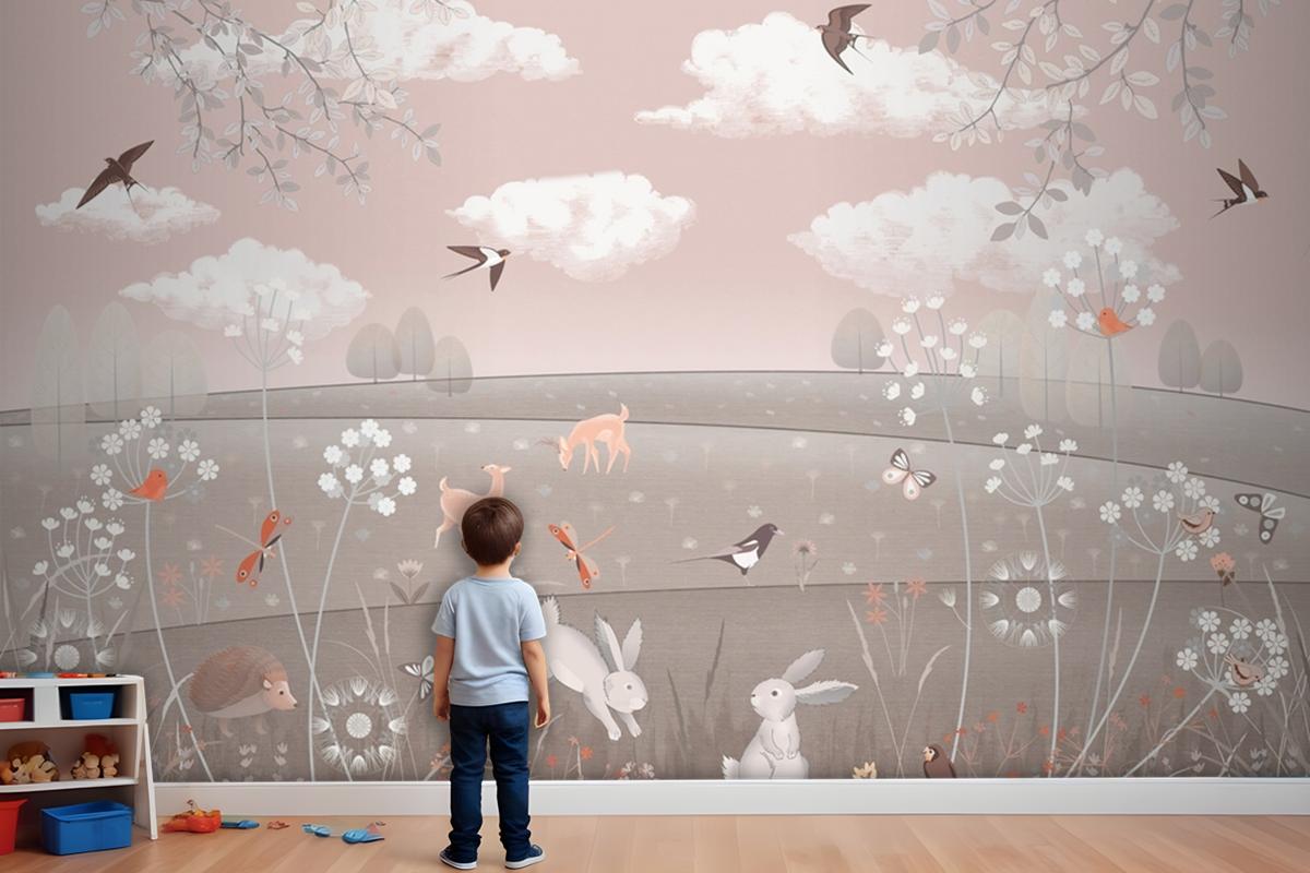Pembe Manzara Geyik Tavşan Kuşlar Çocuk Odası Duvar Kağıdı