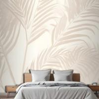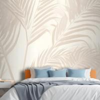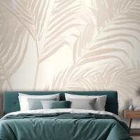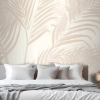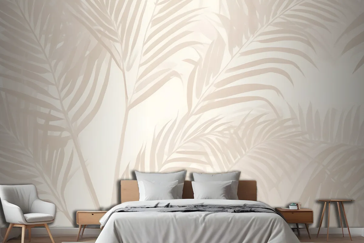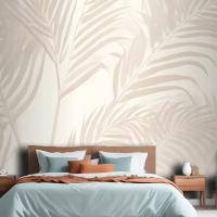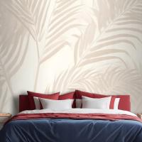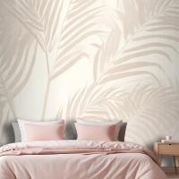 Pembe Palmiye Yaprağı Mürekkep Tropikal Yatak Odası Duvar Kağıdı