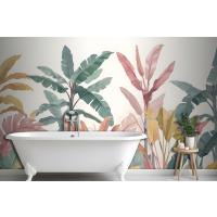 Pembe & Teal Vintage Tropikal Banyo Duvar Kağıdı