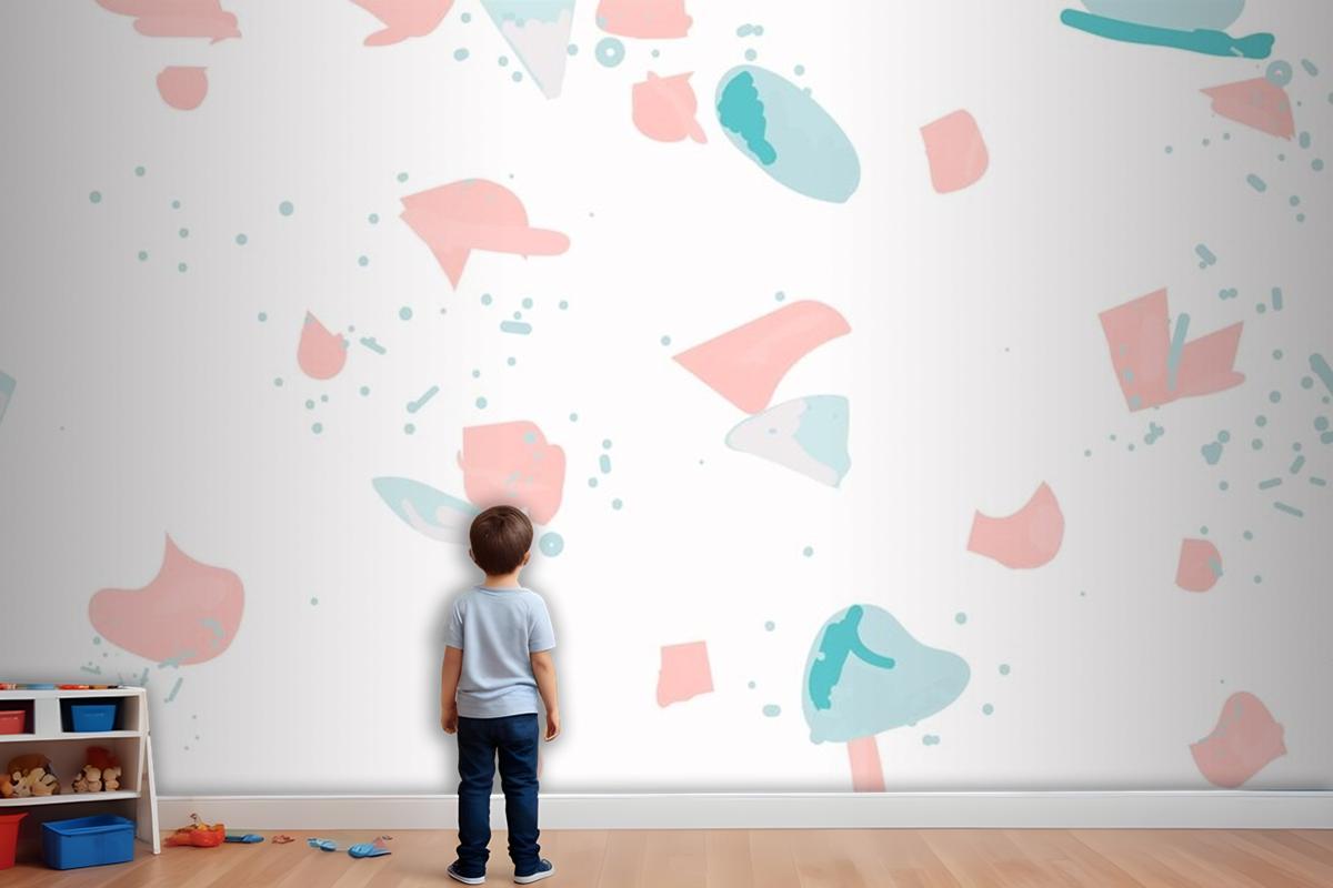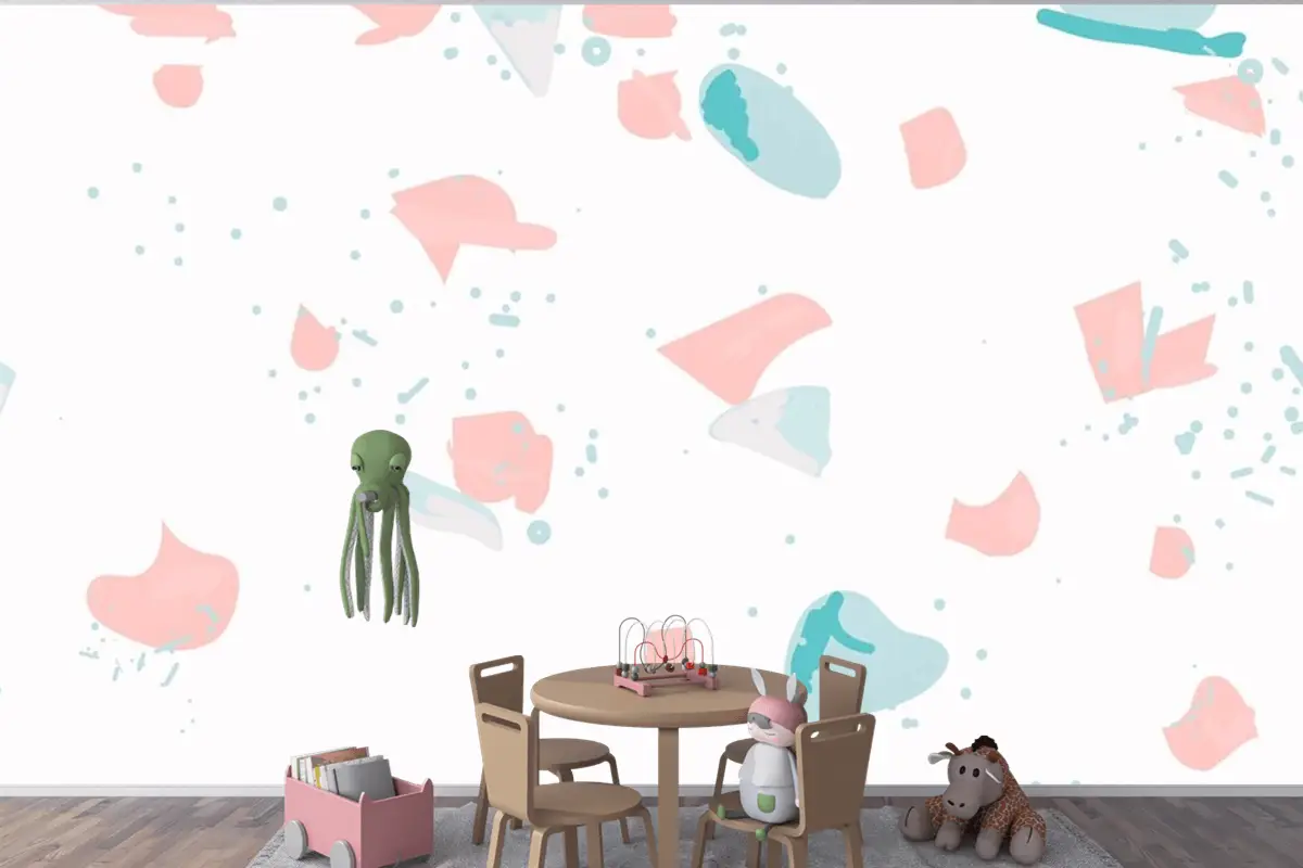 Pembe Ve Mavi Çocuk Odası Duvar Kağıdı Duvarında Renkli Terrazzo Soyut Arkaplan Kusursuz Desen
