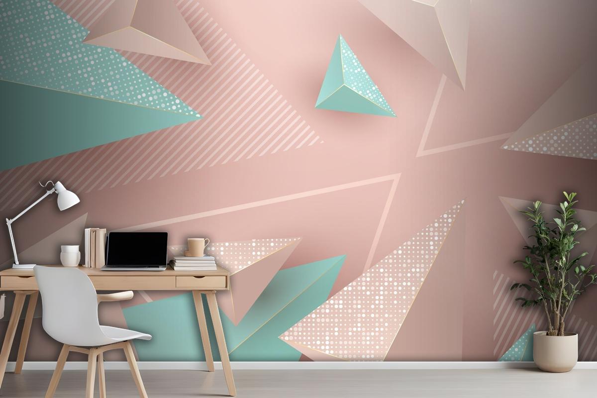 Pembe Ve Yeşil Üçgenler Ile Gerçekçi Arka Plan Ofis Duvar Kağıdı