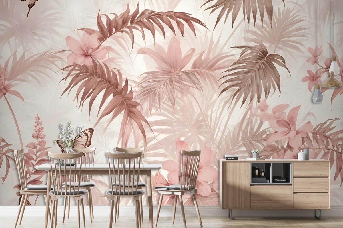 Pembe Yaprak Ve Çiçeği Duvar Kağıdı