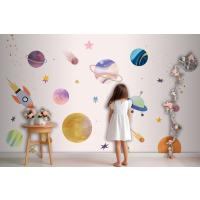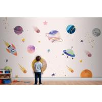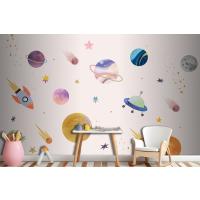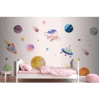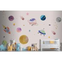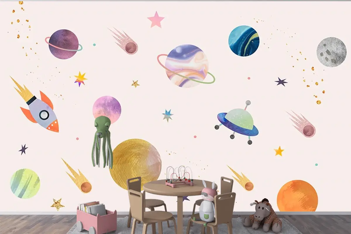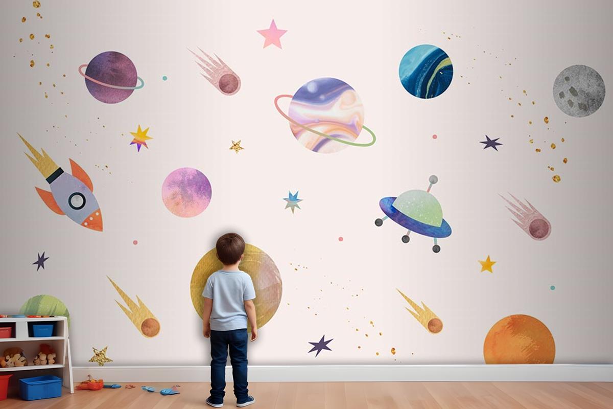 Pembe Zemin Üzerinde Gezegenler Çocuk Odası Duvar Kağıdı