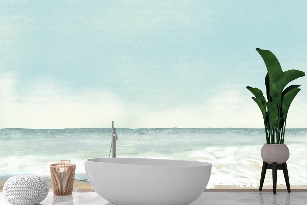 Plaj Arka Plan Renkli Kalem Banyo Duvar Kağıdı