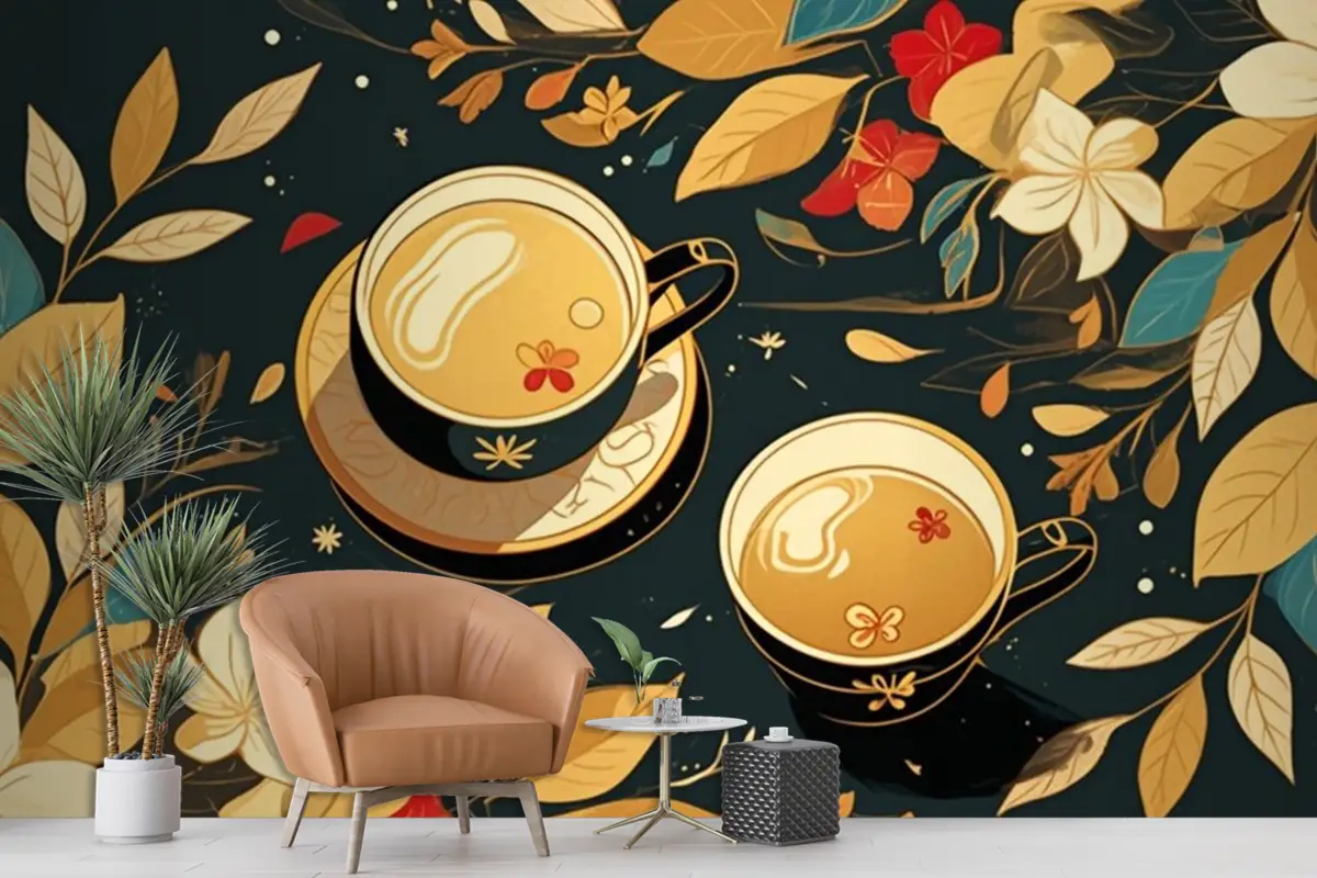 Rafine Unsurlara Sahip Vietnam Çay Desenleri Cafe Duvar Kağıdı