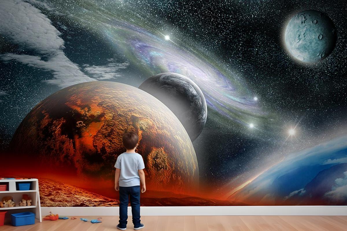 Renkli Galaksi Gezegenler Çocuk Genç Odası Çocuk Odası Duvar Kağıdı
