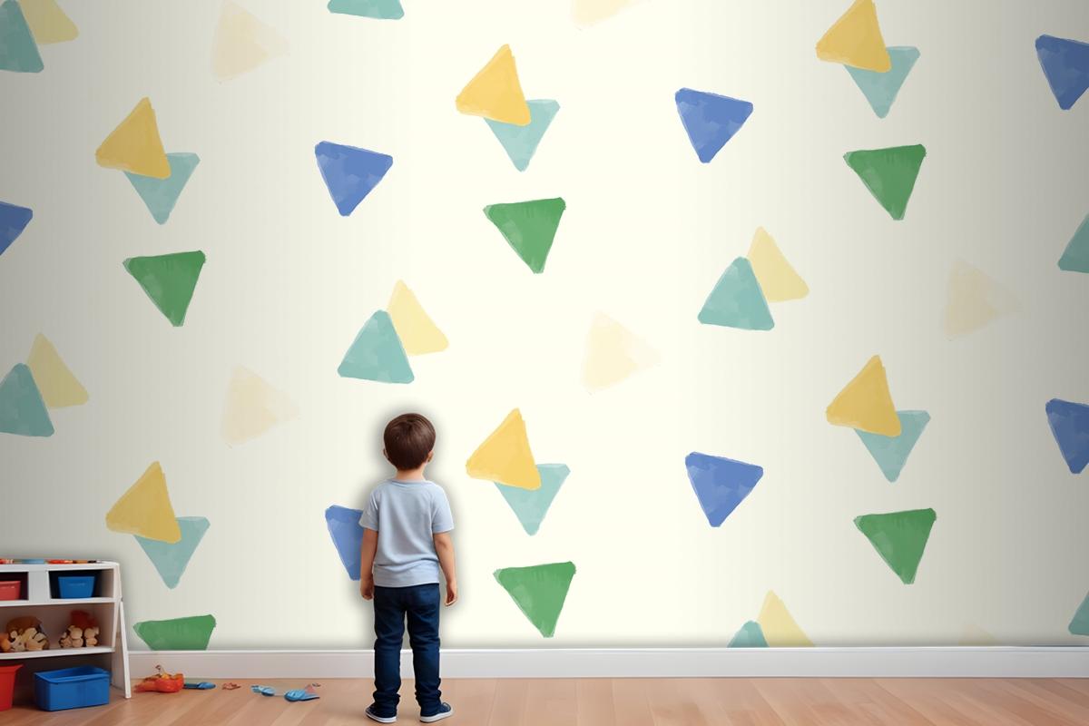 Renkli Geometrik Dikişsiz Desen Tasarımı Çocuk Odası Duvar Kağıdı