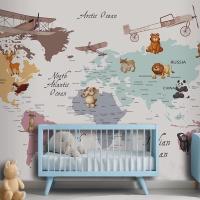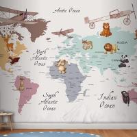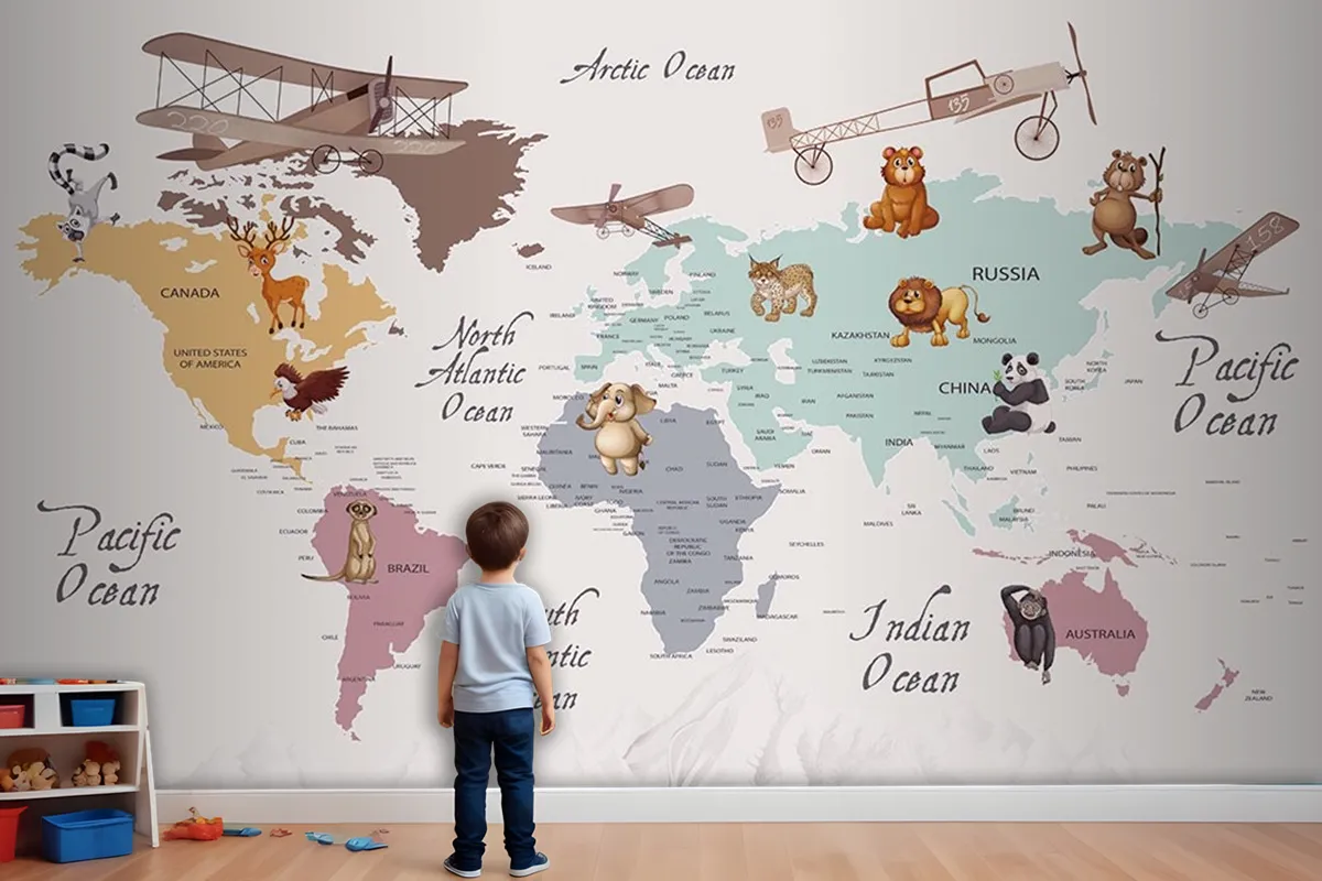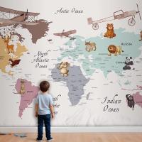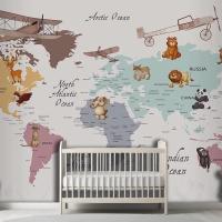 Renkli Kıtalar Öğretici Çocuk Odası Duvar Kağıdı