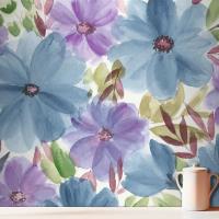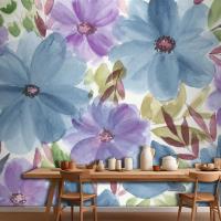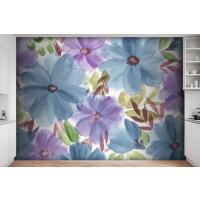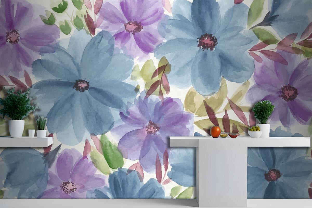 Renkli Suluboya Çiçek Mutfak Duvar Kağıdı