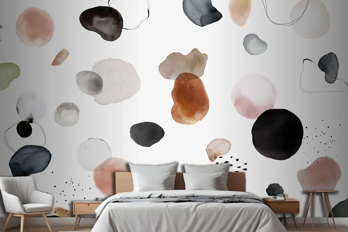 Renkli Suluboya Leke Rozet Seti Yatak Odası Duvar Kağıdı