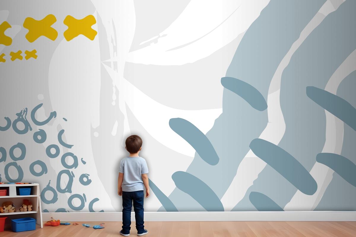 Renkli Tasarımlı Soyut Şekil Renk Sıçrama Çocuk Odası Duvar Kağıdı