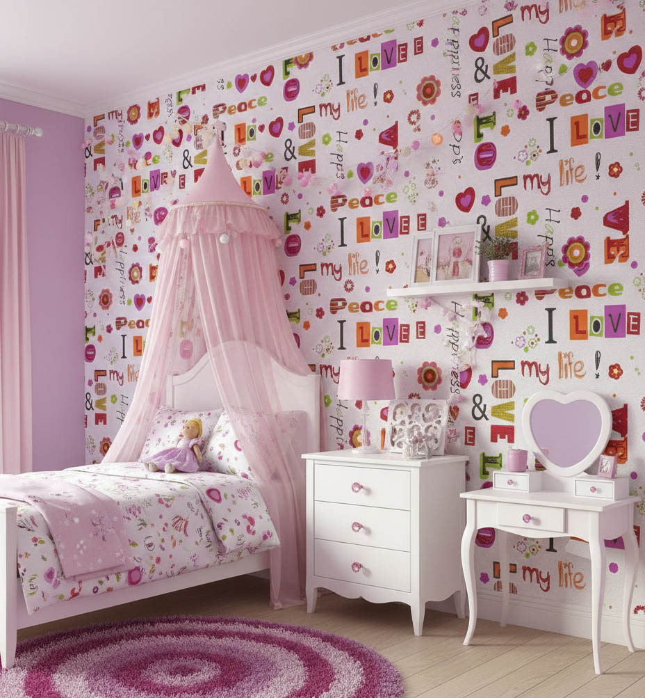 Renkli Yazılı Ucuz Duvar Kağıdı 55940